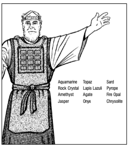 In the Old Testament, in connection with the Tabernacle of Moses in the Wilderness, the high priest ministered on behalf of the nation of Israel for the typical cancellation of sins. The high priest wore garments of glory and beauty, one of which was the breastplate of judgment (Exodus 28:2, 15- 21). In this item of clothing, which was a span wide and a span long — that is, 9 inches square — were set twelve semiprecious stones in golden ouches or receptacles. On the face of the stones were inscribed the names of the twelve tribes of Israel, one name on each stone: Judah, Issachar, Zebulun, Reuben, Simeon, Gad, etc. Each stone, such as the sard, the topaz, and the emerald, had its own characteristics, and the particular jewel was in relationship to the name that was inscribed upon it.