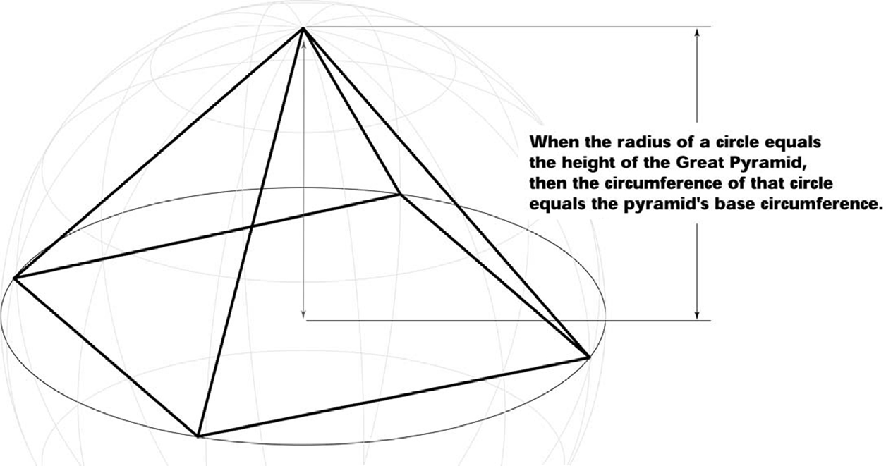 Another amazing feature of the Great Pyramid is how its height is related to the length of its side. If the length of the square base perimeter is considered as the circumference of a circle, the height of the pyramid is exactly the radius of that circle. In other words, if the length of one side of the base is called (s), then the height (h) of the Pyramid is 2s/p, or p = 2s/h. This means that God put the value of pi into the Great Pyramid, and with this, linked the height of the Pyramid to the length of its side.