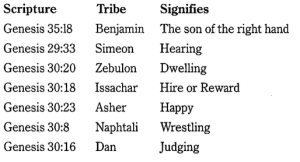 The order in which the tribes are here mentioned is not that of seniority. Rather, it appears to be a spiritual one, ac­ cording to the meaning of their names given in Genesis.