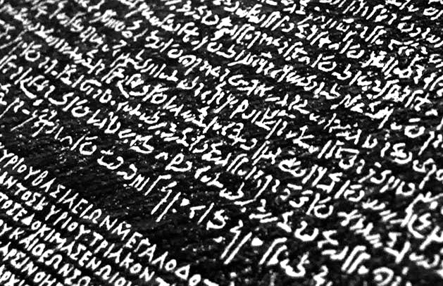 The Rosetta Stone contained three languages; here two are visible.