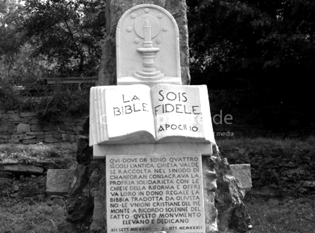Monument at Chanforan – Waldenses ministers met with reformers in Switzerland and Germany, and after careful deliberation, joined the Reformation. In 1532, thousands of ministers and laymen met with prominent reformers at Chanforan, the Waldensian Church embraced the Reformation, and secrecy was abandoned.